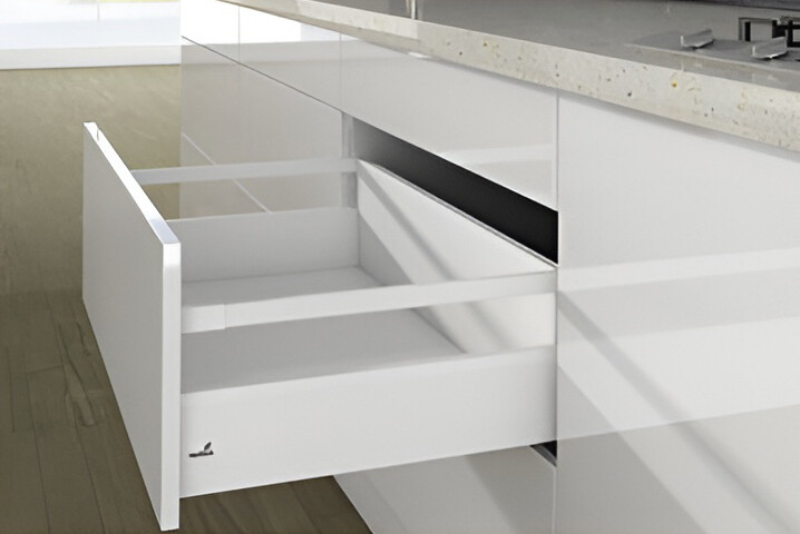 Набор фурнитуры без направляющих HETTICH, для ящика ArciTech с рейлингом, фасадный, NL500, H126/218, цвет белый, под пресс, (V1) Состав комплекта: • 2 боковины, левая и правая • 2 соединителя передней панели, под запрессовку • 2 заглушки с логотипом Hettich, пластик, цвет белый • 2 продольных релинга, левый и правый и 2 соединителя передней панели для продольного релинга, под запрессовку или 1 комплект надставок TopSide с соединителями передней панели или 1 комплект надставок DesignSide из стекла и 1 комплект адаптеров DesignSide с соединителями передней панели • 2 соединителя задней стенки, левый и правый • Крепеж