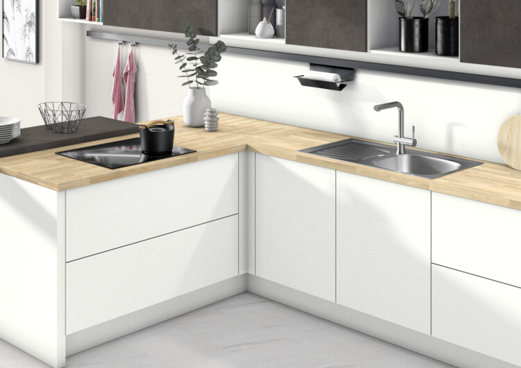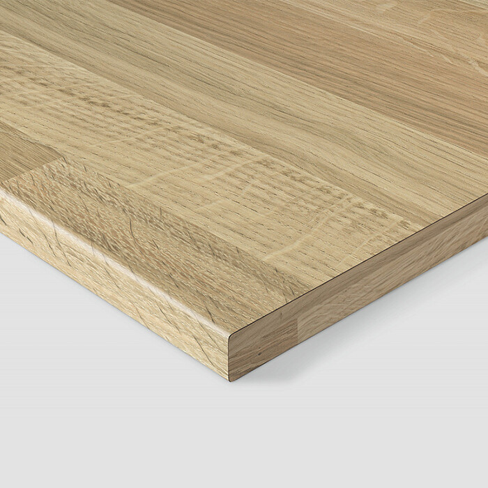 Репродукции наборной древесины пользуются большим спросом именно в дизайне столешниц, так как за счёт узких планок они смотрятся элегантно, но тем не менее стилизованными под поверхности, обработанные вручную. Декор Дуб наборный состоит из множества рустикальных элементов, типичных для репродукций древесины дуба. Однако благодаря слегка сероватому естественному оттенку он не смотрится слишком раздражающе. Он сочетается с однотонными декорами и репродукциями материалов от светлых до тёмных оттенков. Декор с определенным направлением рисунка.