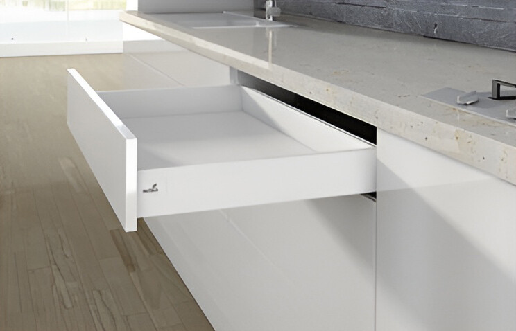 Набор фурнитуры без направляющих HETTICH, для ящика ArciTech, фасадный, NL500, H94, цвет белый, под пресс, (V1) Состав комплекта: • 2 боковины, левая и правая • 2 соединителя передней панели, под запрессовку • 2 заглушки с логотипом Hettich, пластик, цвет белый • 2 соединителя задней стенки, левый и правый • Крепеж