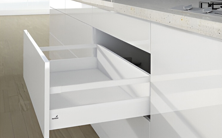 Набор фурнитуры без направляющих HETTICH, для ящика ArciTech с рейлингом, фасадный, NL500, H94/186, цвет белый, под пресс, (V1) Состав комплекта: • 2 боковины, левая и правая • 2 соединителя передней панели, под запрессовку • 2 заглушки с логотипом Hettich, пластик, цвет белый • 2 продольных релинга, левый и правый и 2 соединителя передней панели для продольного релинга, под запрессовку или 1 комплект надставок TopSide с соединителями передней панели или 1 комплект надставок DesignSide из стекла и 1 комплект адаптеров DesignSide с соединителями передней панели • 2 соединителя задней стенки, левый и правый • Крепеж