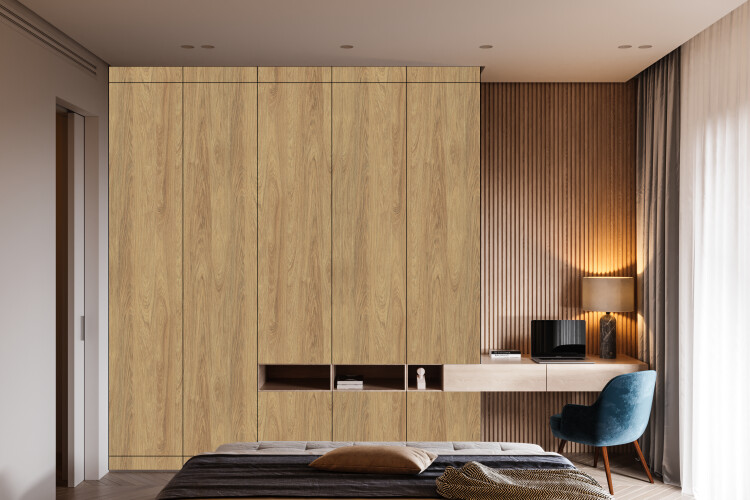 Декор Гикори натуральный представляет собой репродукцию древесины со слегка высветленными порами, придающими ему эффект глубины. В дополнение к этому декор имеет типичную для данного вида древесины богатую цветовую гамму. В данном цветовом оттенке он смотрится почти как древесина дуба и может также использоваться в аналогичных сферах применения.