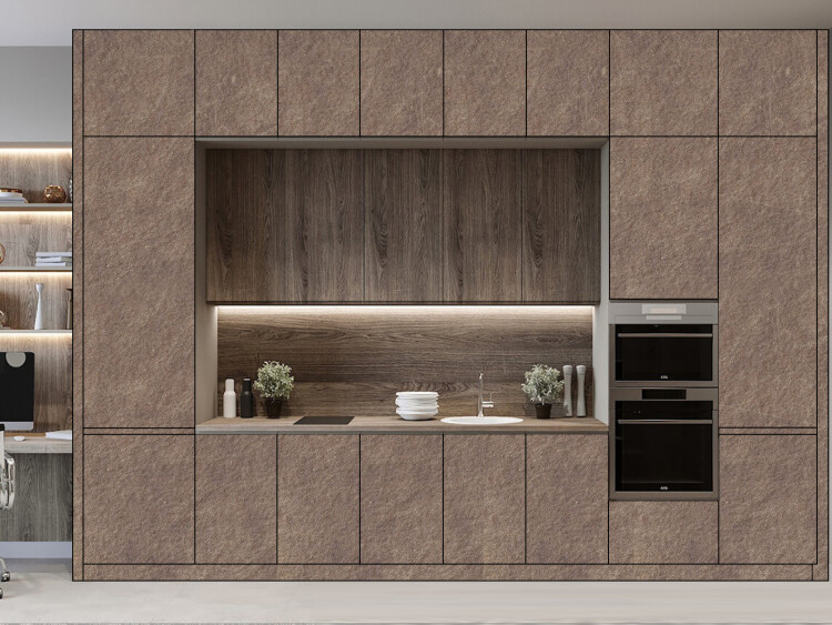 Пластик - это декоративный материал для отделки мебели, являет собой бумажно-слоистый пластик. Современное решение для декоративной отделки кухонь, производится специальным методом прессования некоторых видов бумаги, которые перед началом производства пропитывают синтетическими смолами. Материал обладает широкой цветовой гаммой. Один оттенок можно использовать в нескольких фактурах, таких как матовый, структурный или глянцевый. Если выбрана древесная структура, которая более подходящая для изготовления классических кухонных гарнитуров есть варианты с матовым и глянцевым покрытием. Можно создать покрытие с имитацией смятой бумаги, камня, тканевой фактуры, с разными рисунками, абстрактными в том числе.