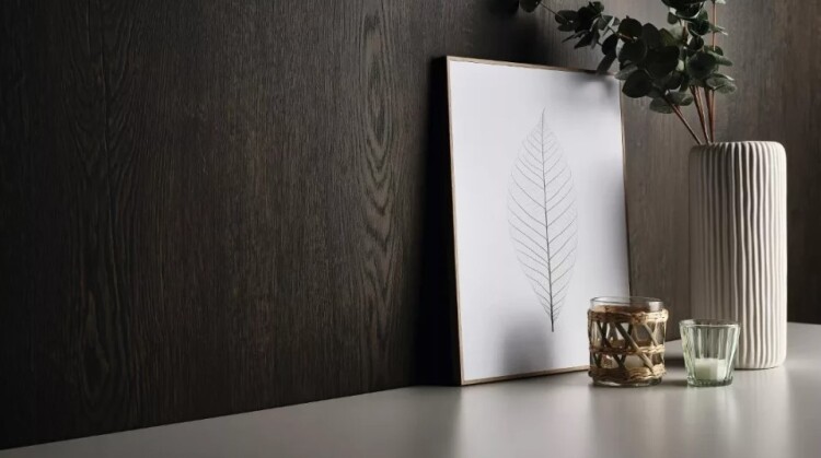 H1186 Дуб Гаронна тёмно-коричневый, характерной особенностью которого являются черные поры и трещины, производит сильное впечатление, прежде всего, за счет ярко выраженных сердцевинных лучей. Черные элементы в его рисунке позволяют создавать комбинации с темными однотонными декорами, особенно с матовым Чёрным, а также с темными, спокойными репродукциями материалов. За счет покрытия матовым лаком PerfectSense в сочетании с синхронными порами структуры TM37 Филвуд рифт матовый декор на вид и на ощупь приобретает естественную матовую поверхность дуба, пропитанную маслом, дополнительным преимуществом которой является отсутствие следов от пальцев.