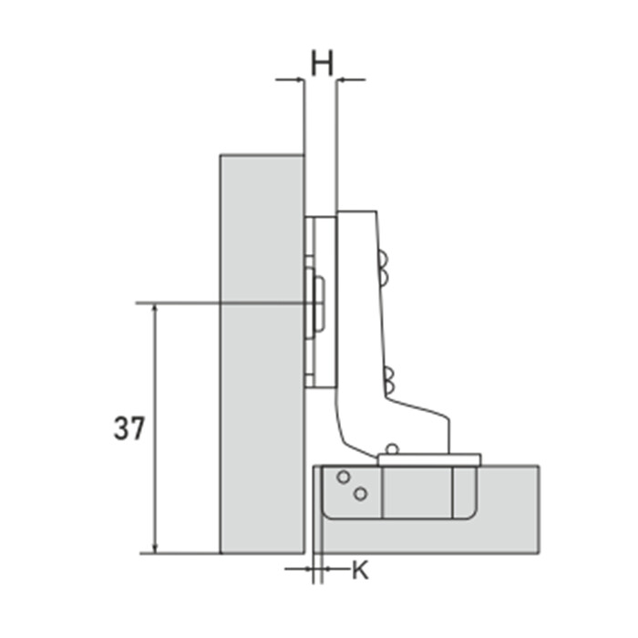 Вкладная Покрытие - антикоррозийное никелирование. Угол открытия: 110°. Глубина чашки: 11.5 мм. Диаметр чашки: 35 мм. Межосевое расстояние чашки: 48 мм. К: 3-7 мм. Толщина двери: 12-18 мм.