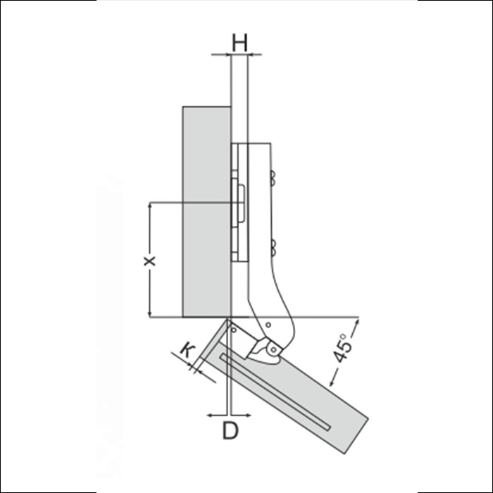 Петля угловая с доводчиком 45град 48мм чашка 35мм (100шт/кор) Gelony