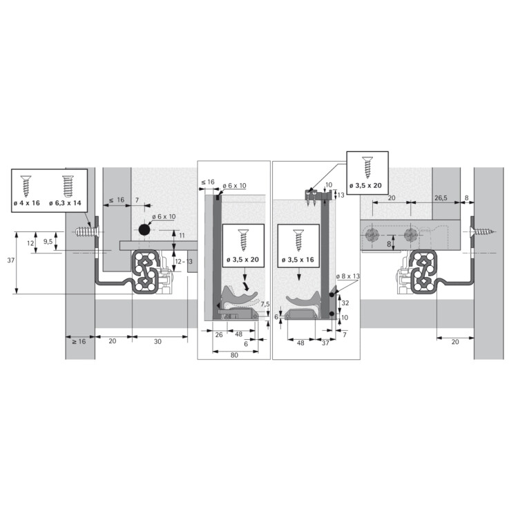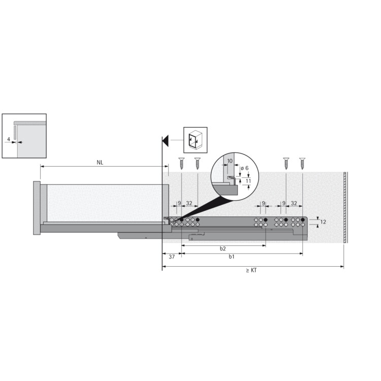 Направляющая Quadro V6 15 надвижного монтажа, полного выдвижения, c механизмом Push to open, 15 кг, EB20, NL250, правая Надвижной монтаж с фиксаторами и регулировкой по высоте без инструмента Встроенный механизм открывания Push to open Опционально: синхронизация / мультисинхронизация Опционально: фиксаторы и детали крепления для выдвижных полок Опционально: фиксатор полки в выдвинутом положении Подходит для ящика с толщиной боковины до 16 мм Концепция единой платформы: идентичные размеры корпуса, ящика и передней панели для направляющих Quadro полного и частичного выдвижения надвижного монтажа Нагрузочная способность соответствует стандарту EN 15338, уровень 3 Сталь оцинкованная Рекомендации: При использовании фиксаторов/деталей крепления для выдвижных полок длину полки необходимо уменьшить на 12 мм (номинальная длина NL - 12 мм)