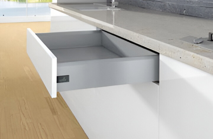 Набор фурнитуры без направляющих HETTICH, для ящика ArciTech, фасадный, NL500, H126, цвет серебристый, под пресс, (V1) Состав комплекта: • 2 боковины, левая и правая • 2 соединителя передней панели, под запрессовку • 2 заглушки с логотипом Hettich, пластик, цвет антрацит • 2 соединителя задней стенки, левый и правый • Крепеж