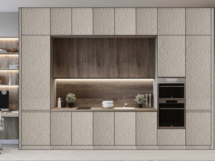 Пластик - это декоративный материал для отделки мебели, являет собой бумажно-слоистый пластик. Современное решение для декоративной отделки кухонь, производится специальным методом прессования некоторых видов бумаги, которые перед началом производства пропитывают синтетическими смолами. Материал обладает широкой цветовой гаммой. Один оттенок можно использовать в нескольких фактурах, таких как матовый, структурный или глянцевый. Если выбрана древесная структура, которая более подходящая для изготовления классических кухонных гарнитуров есть варианты с матовым и глянцевым покрытием. Можно создать покрытие с имитацией смятой бумаги, камня, тканевой фактуры, с разными рисунками, абстрактными в том числе.