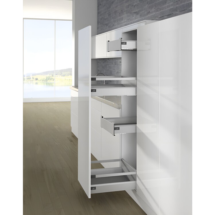 ArciTech Комплект боковин, Высота боковины 94 мм x NL 500 мм, серебристый, левая и правая Состав комплекта: 1 боковина ящика, левая и правая 2 соединителя передней панели, под запрессовку 2 заглушки с логотипом Hettich, пластик, цвет антрацит Крепеж