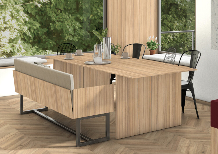 Имитация экзотической древесины Кокоболо натуральный привлекает за счёт выразительных тёмных линий в своей текстуре на фоне очень светлого основного цвета. В помещениях такой декор подчёркивает горизонтальные поверхности и поэтому очень популярен, например, в качестве декора стоек и прилавков. В комбинациях с ним можно создавать яркие цветовые акценты и контрасты с тёмно-коричневыми декорами.