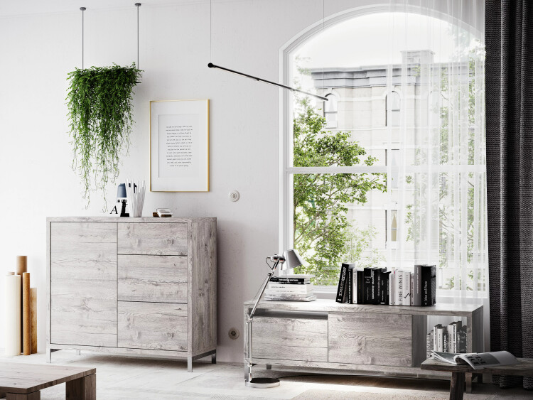 Декор, в котором преобладает сизый оттенок. Ярко выраженная древесная структура с сучками. Прекрасно подходит для скандинавских интерьеров.
