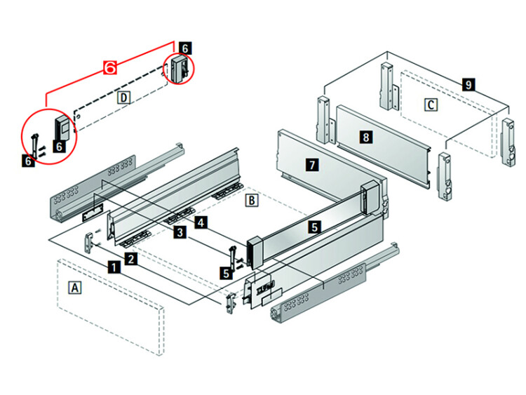 Для использования с надставкой на боковину DesignSide из любого материала Пластик темно-серого цвета Соединитель передней панели для DesignSide, монтаж под прикручивание; при необходимости заказывается отдельно Состав комплекта 2 передних адаптера DesignSide, левый и правый 2 задних адаптера DesignSide, левый и правый 2 соединителя передней панели с распорными муфтами Крепеж
