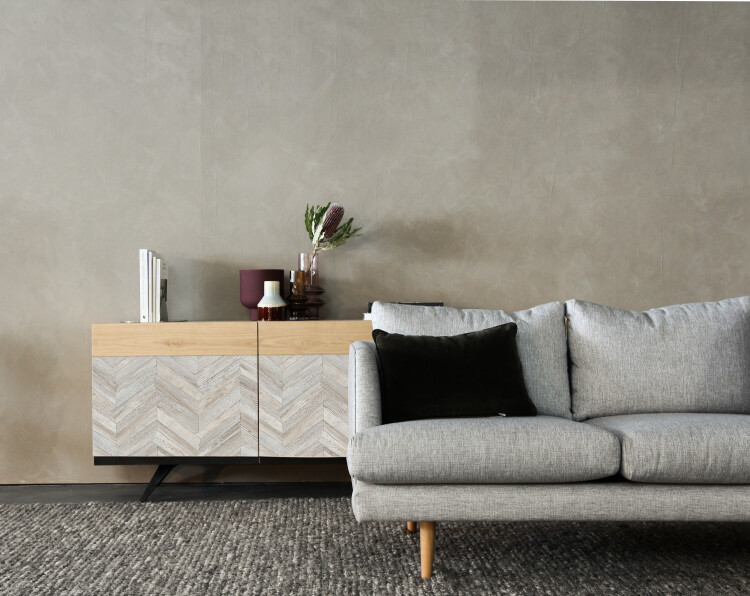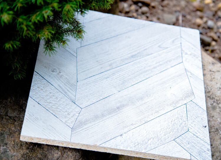 Декор «Ёлочка Арктическая» отсылает к скандинавскому стилю, благодаря подчёркнутой светлой древесине и контрастным тёмным швам. Декор смотрится современно, разнообразно и очень графично. Это интересный вариант для оформления акцентов в мебели.