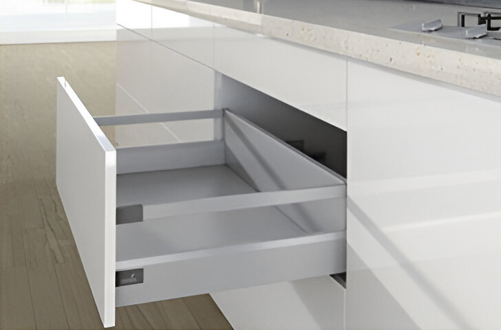 Набор фурнитуры без направляющих HETTICH, для ящика ArciTech с рейлингом, фасадный, NL400, H94/186, цвет серебристый, под пресс, (V1) Состав комплекта: • 2 боковины, левая и правая • 2 соединителя передней панели, под запрессовку • 2 заглушки с логотипом Hettich, пластик, цвет антрацит • 2 продольных релинга, левый и правый и 2 соединителя передней панели для продольного релинга, под запрессовку • 2 заглушки с логотипом Hettich, пластик, цвет антрацит • Крепеж
