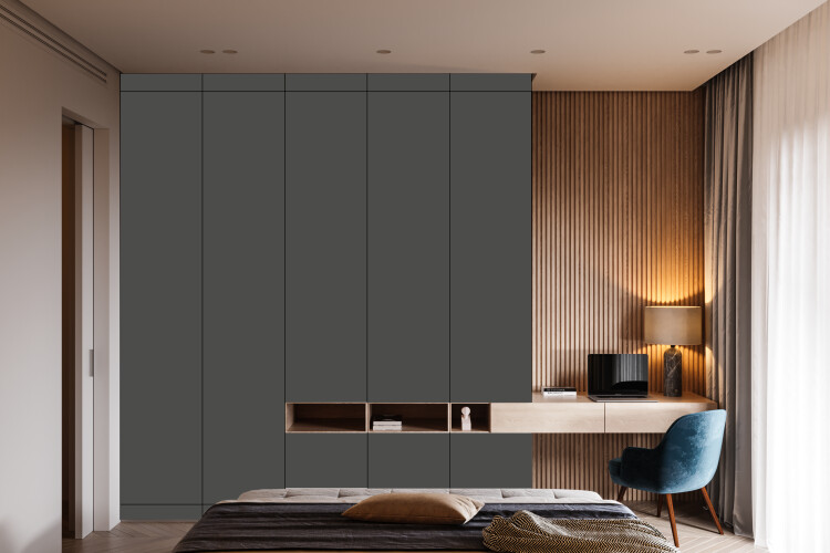 Диамант серый – по степени темноты этот декор нейтрального серого цвета может быть поставлен в один ряд с холодными серыми тонами после Чёрного и Графита серого. Этот однотонный декор относится к почти черным оттенкам Nearly Black, которые используются в качестве более мягкой альтернативы резким контрастам с Чёрным. Очень приятно смотрятся контрастные сочетания с естественными древесными декорами. Структура ST9 Мягкий матовый придает этому серому декору естественно матовый вид, сопоставимый с лакированной поверхностью.