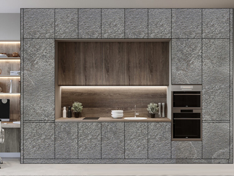 Пластик - это декоративный материал для отделки мебели, являет собой бумажно-слоистый пластик. Современное решение для декоративной отделки кухонь, производится специальным методом прессования некоторых видов бумаги, которые перед началом производства пропитывают синтетическими смолами. Материал обладает широкой цветовой гаммой. Один оттенок можно использовать в нескольких фактурах, таких как матовый, структурный или глянцевый. Если выбрана древесная структура, которая более подходящая для изготовления классических кухонных гарнитуров есть варианты с матовым и глянцевым покрытием. Можно создать покрытие с имитацией смятой бумаги, камня, тканевой фактуры, с разными рисунками, абстрактными в том числе.
