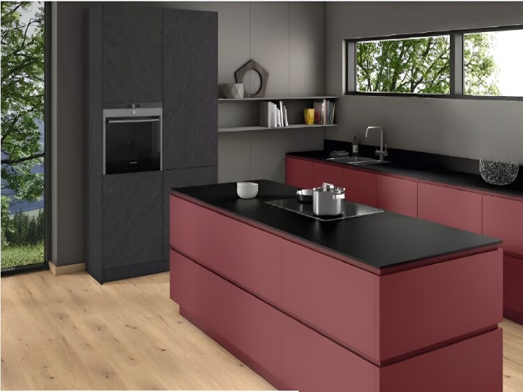 Красный гранат – это декор очень глубокого темно-красного цвета с черным отливом, благодаря которому его комбинации с почти черными репродукциями древесины и Чёрным декором выглядят очень благородно. Такие темные, приглушенные цвета создают плавные сочетания с естественными теплыми оттенками. Эти визуальные свойства декора получают идеальный завершающий штрих за счет тактильных достоинств лакированной поверхности PM PerfectSense Premium Matt. Использование плит МДФ или бумажно-слоистого пластика в качестве несущего материала обеспечивает благородную изысканность матового материала и его безупречную гладкость. При прикосновении на такой матовой поверхности однотонных декоров не появляются следы от пальцев, что открывает дополнительные возможности их применения в том числе и на участках с высокой интенсивностью эксплуатации.