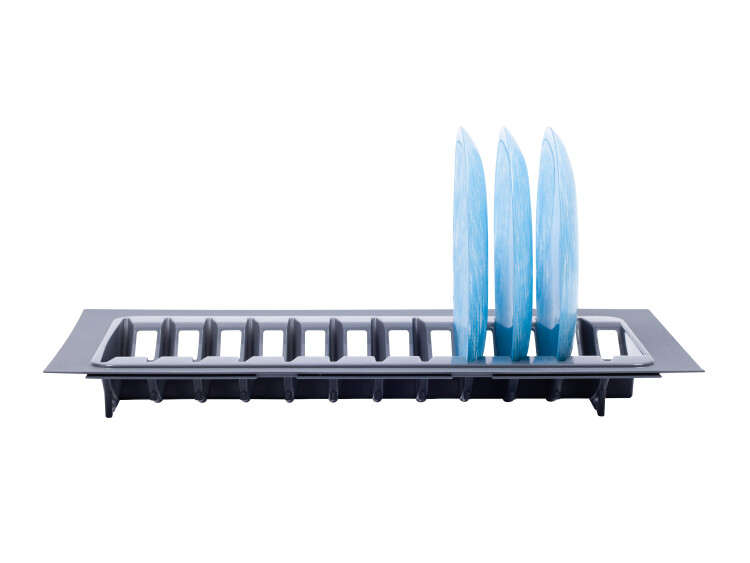 Лоток для хранения тарелок TRAYBOND цвета антрацит от производителя Gelony. Сделан из прочного пластика, не выцветает со временем. Лоток имеет удобную форму и размер, что позволяет вместить в нем 11 тарелок диаметром 185мм.
