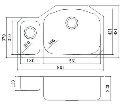 OULIN OL-U601 c вместительной основной чашей и удобной дополнительной Поверхность чаши мойки сатиновая. С шумопоглащающиим накладками с обратной стороны мойки; Идеально подходит для классических и современных кухонь; Комлпект: Выпуск, перелив, сифон
