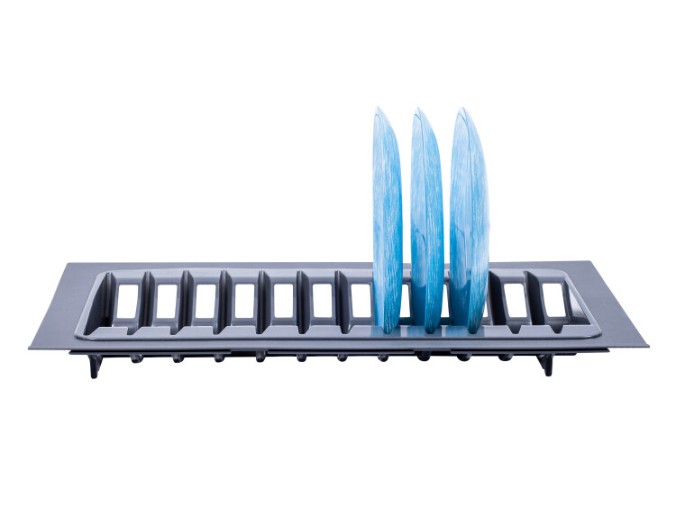 Лоток для хранения тарелок TRAYBOND цвета антрацит от производителя Gelony. Сделан из прочного пластика, не выцветает со временем. Лоток имеет удобную форму и размер, что позволяет вместить в нем 11 тарелок диаметром 185мм.