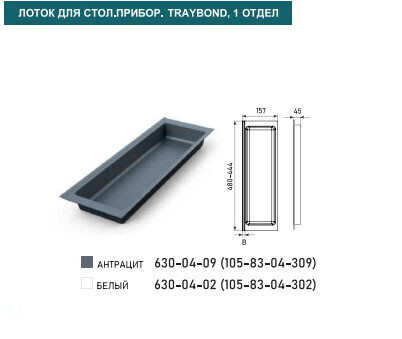 Лоток для хранения столовых приборов TRAYBOND с одним отделом белого цвета от производителя Gelony. Сделан из прочного пластика, не выцветает со временем. Лоток имеет удобную форму и размер, что позволяет вместить набор ложек, вилок, ножей, штопор, палочки для еды и т.д.
