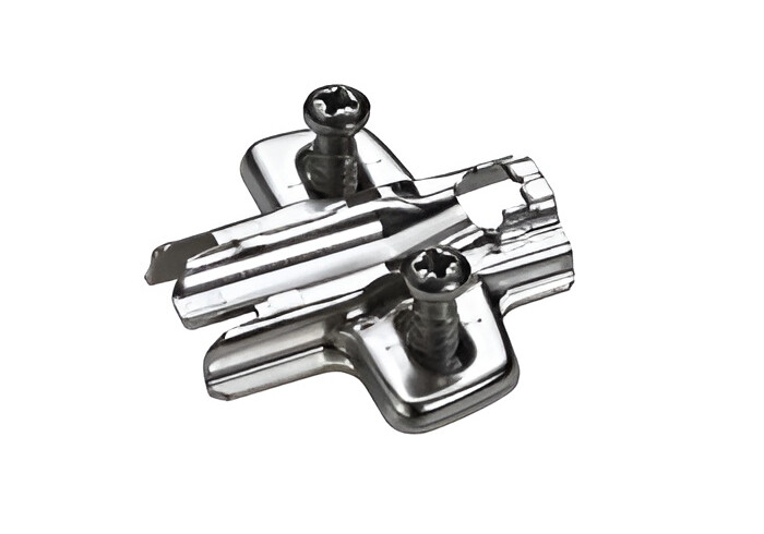 Крестовая ответная планка HETTICH Sensys, D=0, с евровинтами, (28/32 мм), никель • Для отверстий ? 5 x 12 мм • Качество соответствует стандарту EN 15570, уровень 3 • Межосевое расстояние 32 мм • Регулировка по высоте за счет шлицевых отверстий ± 3 мм • Никелированная сталь