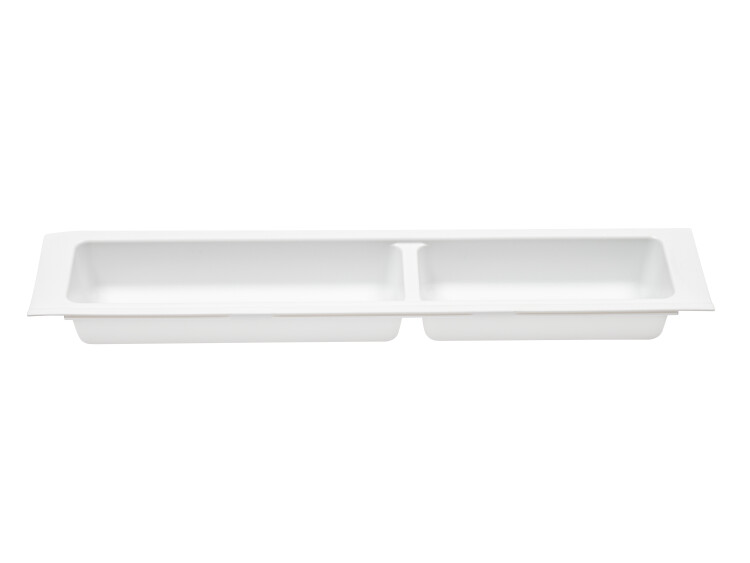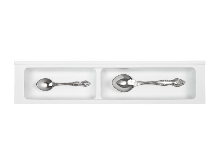 Лоток для хранения столовых приборов TRAYBOND с двумя отделами белого цвета от производителя Gelony. Сделан из прочного пластика, не выцветает со временем. Лоток имеет удобную форму и размер, что позволяет вместить набор ложек, вилок, ножей, штопор, палочки для еды и т.д.