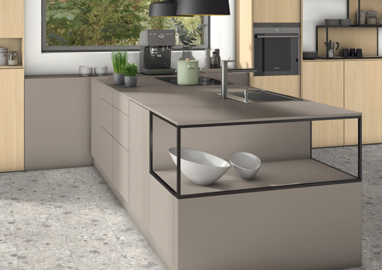 Кубанит серый – слегка тёплый оттенок серого, который однако может использоваться для достаточно нейтрального оформления. Этот декор гармонично сочетается с репродукциями древесины с долей серого цвета. Бархатистая на ощупь структура ST9 Мягкий матовый подчёркивает нейтральный характер декора.