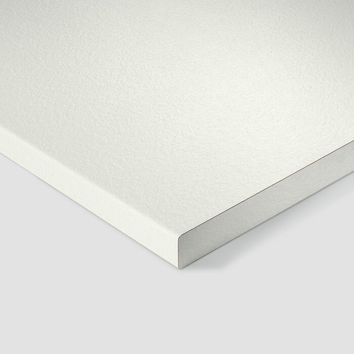 Благодаря своей особой кроющей способности декор W1000 Белый Премиум смотрится очень солидно. Его нейтральный оттенок создает гармоничный контраст с древесными декорами в естественных цветах. Структура ST76 Минерал шероховатый матовый придает декору рельеф, на ощупь напоминающий шероховатую поверхность камня. Она не слишком доминирует визуально и создает на белых декорах элегантное тиснение.