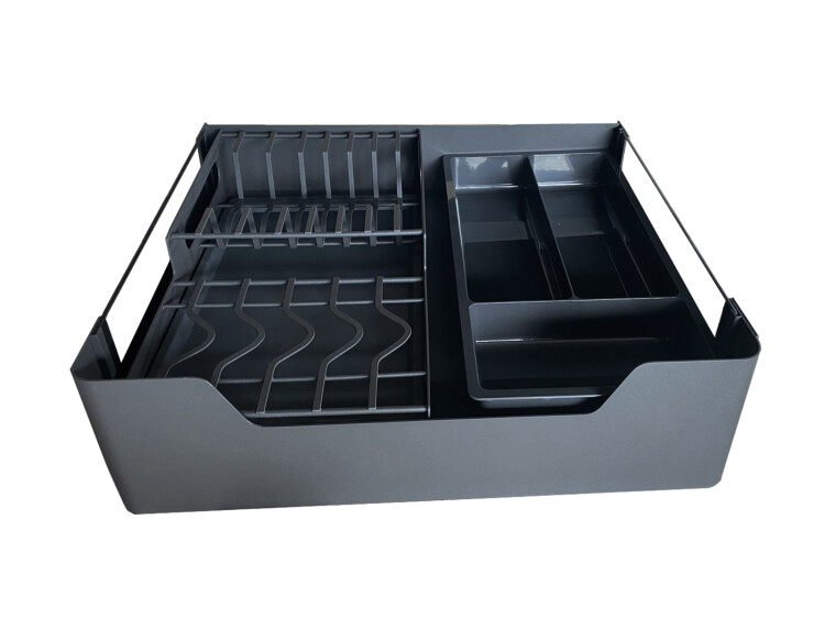 Выдвижная корзина-сушка 600 мм GLX TALISMAN, со стеклом, графит, Soft-Close, с лотками (1 к-т/кор)