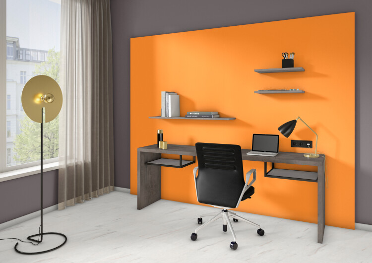 Чистый и насыщенный Оранжевый выгодней всего смотрится в качестве акцента в сочетании с очень светлыми или очень тёмными репродукциями материалов. За счёт своей интенсивности он принадлежит к числу базовых цветовых оттенков. Структура ST9 Мягкий матовый придаёт всей палитре однотонных декоров естественную бархатистость на ощупь.