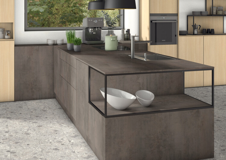 Декор из успешной серии Хромикс в металлическом цвете бронза мало напоминает камень. Но за счёт структуры ST16 Минерал оштукатуренный эффект каменной поверхности усиливается. Во внутренней отделке эта репродукция идеально подходит для оформления больших поверхностей стен, тогда как в дизайне мебели при её использовании на корпусах и фасадах часто создаются кубические элементы. Тёплый оттенок этого декора позволяет создавать гармоничные комбинации с древесными репродукциями такого же тёплого оттенка, а также с красноватыми однотонными декорами.