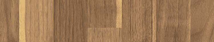 Репродукции наборной древесины пользуются большим спросом именно в дизайне столешниц, так как за счёт узких планок они смотрятся элегантно, но тем не менее стилизованными под поверхности, обработанные вручную. При этом в рисунке декора Орех наборный наряду с отчасти довольно элегантными, отчасти довольно рустикальными участками, содержатся элементы заболони, за счёт чего он в целом приобретает очень современную и естественную элегантность. Естественный, но при этом современный вид эта репродукция Ореха получает также за счёт структуры ST12 Поры матовые.
