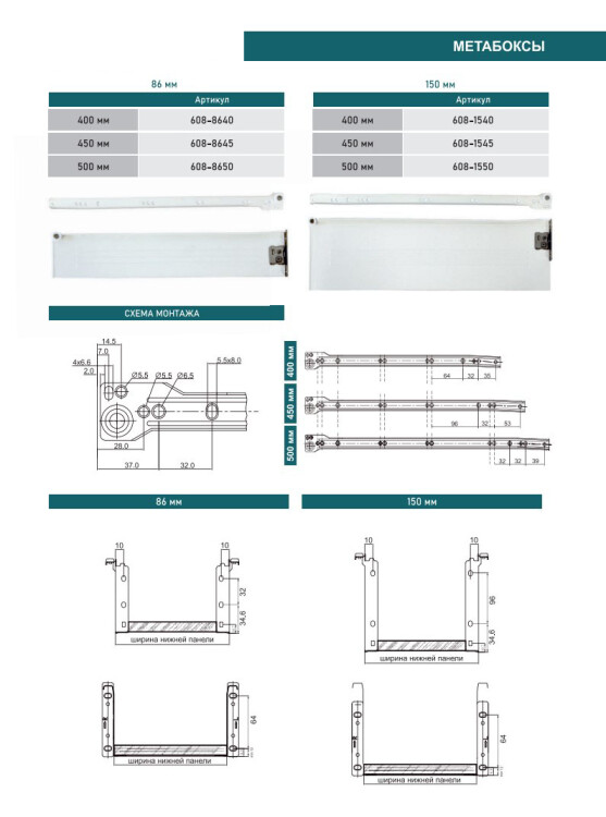 Метабокс 400 мм*150 мм белый (Gelony) (10шт/кор.)