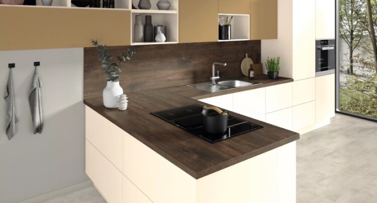 Декор H2409 Дуб Кардифф коричневый является рустикальной репродукцией древесины дуба с имитацией дощатого рисунка. Его темно-коричневый цвет в сочетании черными порами позволяет интересно комбинировать этот декор, используемый для оформления столешниц, с черными акцентными элементами. За счет расположения элементов в раппорте декора в формате XL, то есть уменьшения количества повторяющихся трещин и сучьев в рисунке, данная репродукция смотрится еще более натурально. В структуре STG8 Поры глубокие матовые яркая текстура со следами распила и матовыми древесными порами на ощупь становится также натуральной и приятной.