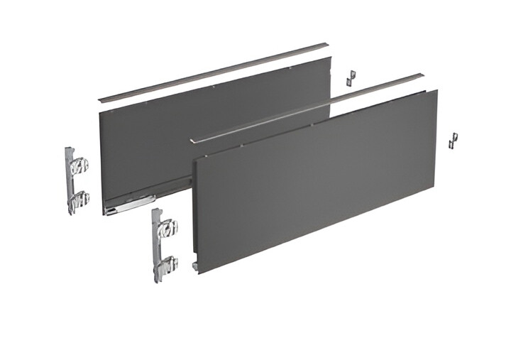 Комплект фурнитуры ящика HETTICH AvanTech You, H187 мм, NL500 мм, цвет антрацит • Встроенная вертикальная, боковая регулировки и регулировка наклона • Сталь с порошковым покрытием • Крепеж Состав комплекта: • 2 боковины ящика, левая и правая • 2 дизайн-профиля • 2 соединителя передней панели под прикручивание • 2 стабилизатора задней стенки