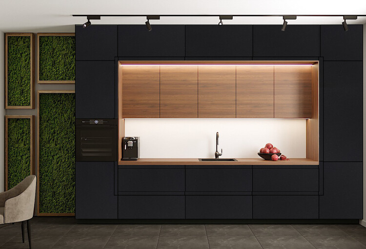 Черный - это элегантный и загадочный цвет, который часто используется в интерьерах для создания современного и стильного вида. Черный выглядит очень стильно и современно, и хорошо сочетается с другими нейтральными цветами, такими как серый, белый и коричневый, а также с яркими акцентами в виде красных, зеленых или золотых деталей интерьера.