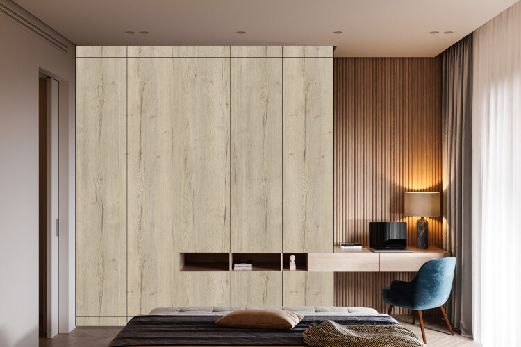 Эффект покрытия белой, глубокой щеткой, лакированной сосны сочетает в себе нейтральность и естественность, что очень желательно как на больших поверхностях, используемых в дизайне интерьера, так и в дизайне мебели.