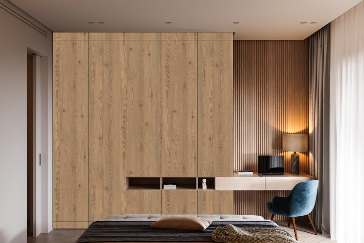 Эффект покрытия белой, глубокой щеткой, лакированной сосны сочетает в себе нейтральность и естественность, что очень желательно как на больших поверхностях, используемых в дизайне интерьера, так и в дизайне мебели.