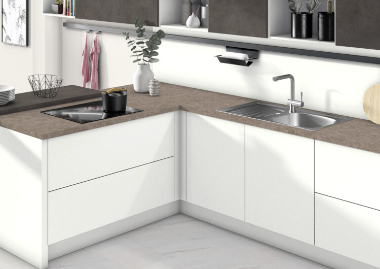 Декор для отделки столешниц Бетон орнаментальный серый искусно объединяет два трендовых направления. Имитации бетона встречаются сейчас во всех сферах дизайна в различных оттенках, а варианты с орнаментом зачастую используются в качестве акцента. Этот оттенок был создан в нейтральных и хорошо сочетаемых нюансах, благодаря которым возможны самые разнообразные комбинации. Структура ST76 Минерал шероховатый матовый придаёт декору рельефность, на ощупь напоминающую шероховатую поверхность камня.