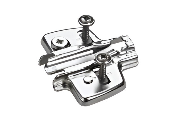 Крестовая ответная планка HETTICH Direkt Sensys, D=3, для смежных стенок, с евровинтами, (37/32 мм), никель • Для отверстий ? 5 x 7,5 мм • Качество соответствует стандарту EN 15570, уровень 2 • Межосевое расстояние 32 мм • Навеска на среднюю стенку, толщина панели от 15 мм • Эксцентриковая регулировка по высоте ± 2 мм • Никелированная сталь