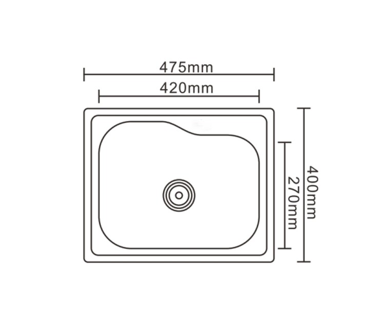 Мойка кухонная (стальная) EMAR 4740 EMAR 4740 - кухонная мойка с нестандартными размерами. Углы закругленные, сама мойка врезная, без крыла. EMAR мойка 4740: подходит для маленьких кухонь. Поверхность данной мойки: полированная, толщина стали: 0,8 мм. Сделана из стали 201 марки, полированная. Система слива стандартная 114 мм. Мойка идет без отверстия под смеситель.