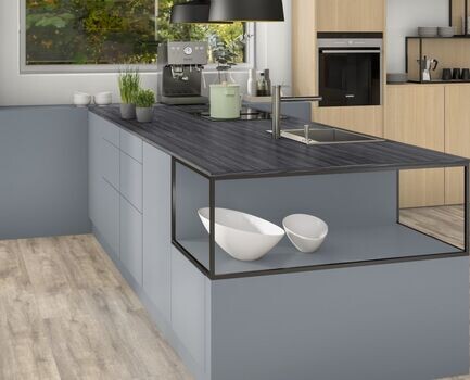 Новый серый декор Серый монументальный содержит привлекательный синий оттенок, который идеально подходит для комбинирования с элегантными тёмными синими декорами или сине-серыми древесными репродукциями.