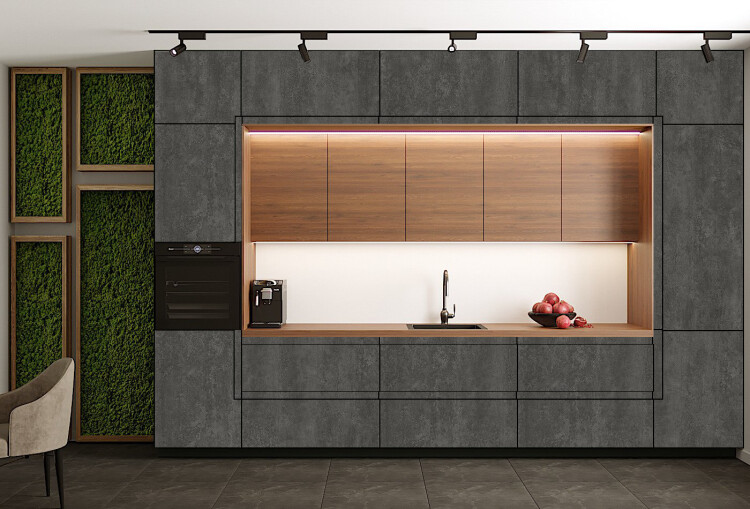 Пластик - это декоративный материал для отделки мебели, являет собой бумажно-слоистый пластик. Современное решение для декоративной отделки кухонь, производится специальным методом прессования некоторых видов бумаги, которые перед началом производства пропитывают синтетическими смолами. Материал обладает широкой цветовой гаммой. Один оттенок можно использовать в нескольких фактурах, таких как матовый, структурный или глянцевый. Если выбрана древесная структура, которая более подходящая для изготовления классических кухонных гарнитуров есть варианты с матовым и глянцевым покрытием. Можно создать покрытие с имитацией смятой бумаги, камня, тканевой фактуры, с разными рисунками, абстрактными в том числе.