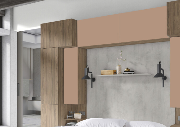 Металлик медь относится к однотонным декорам и имеет необычный цвет. Его темно розовый оттенок придает ему больше серьезности. Его можно использовать для кухни, гостиной и спальни.